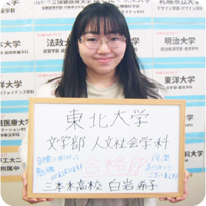 東北大学 文学部 人文社会学科 合格三本木高校 普通科 白岩 希子さん (担当教師:老久保 弘美先生)