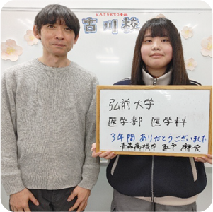 弘前大学 医学部 医学科 合格青森高校 普通科 五戸 麻央さん (担当教師:平野 耕大先生)